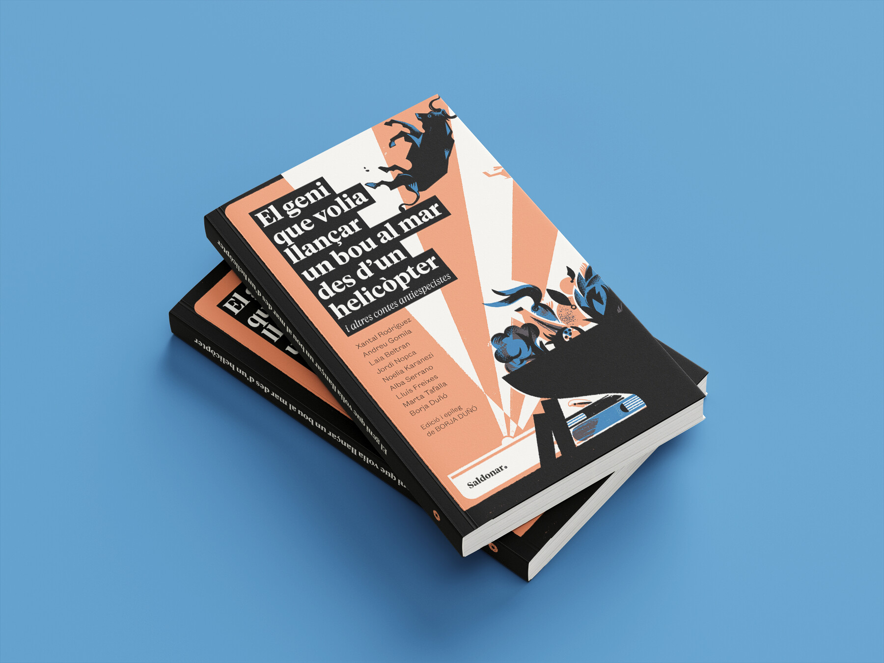 El geni que volia llançar un bou al mar des d’un helicòpter i altres contes antiespecistes és un pas significatiu en el camí de fer una literatura que no només ens commogui, sinó que sacsegi les nostres certeses més profundes sobre qui som com a espècie i a qui fem mal en aquest món. És el resultat d’ajuntar veus diferents, que han creat relats que van del tour virtual a una empresa càrnia a la història d’una desconeguda filla de Noè, passant per contes que aborden la naturalesa mateixa de la violència, l’horror de l’experimentació animal i la banalització del maltractament convertit en espectacle. Les narracions són sorprenents, inquietants i fantàstiques, i tenen girs inesperats.